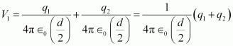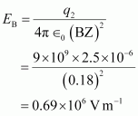 Therefore, the potential at mid-point is 2.4 × 105 V and the electric field at mid-point is 4× 105 V m-1. The field is directed from the larger charge to the smaller charge.