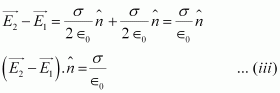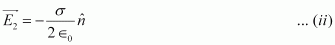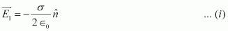 Ans : Electric field on one side of a charged body is E1 and electric field on the other side of the same body is E2. If infinite plane charged body has a uniform thickness, then electric field due to one surface of the charged body is given by,