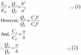 Let EAbe the electric field of sphere A and EB be the electric field of sphere B. Therefore, their ratio,