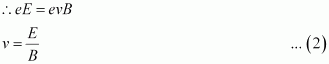 Since the particle remains undeflected by electric and magnetic fields, we can infer that the force onthe charged particle due to electric field is balancing the force on the charged particle due to magnetic field.