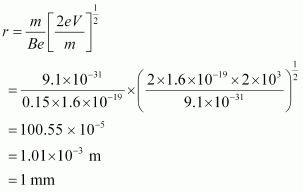Hence, the electron has a circular trajectory of radius 1.0 mm normal to the magnetic field.