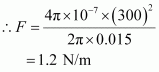Distance between the wires, r = 1.5 cm = 0.015 m
