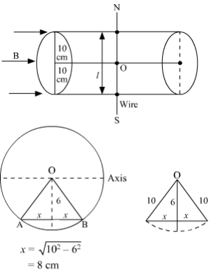 Thus the length of wire in magnetic field will be 16 cm as AB= L =2x =16 cm