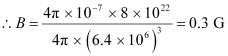 Ans : Magnetic moment, M = 8 × 1022 J T-1