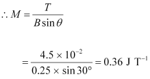 Ans : Moment of the bar magnet, M = 0.32 J T-1