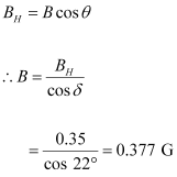 Ans : Horizontal component of earth’s magnetic field, BH = 0.35 G