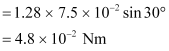 - #8-bWhat is the force and torque on the solenoid if a uniform horizontal magnetic field of 7.5 × 10-2 T is set up at an angle of 30° with the axis of the solenoid?Ans : Magnetic field, B = 7.5 × 10-2 T