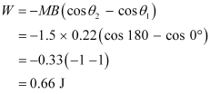 - #7-aWhat is the amount of work required by an external torque to turn the magnet so as to align its magnetic moment:Ans : Magnetic moment, M = 1.5 J T-1