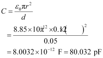 Capacitance of a parallel plate capacitor, C = 100 pF = 100 × 10-12 F