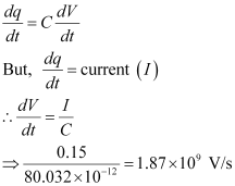 - #1-aCalculate the capacitance and the rate of charge of potential difference between the plates.Ans : Capacitance between the two plates is given by the relation,