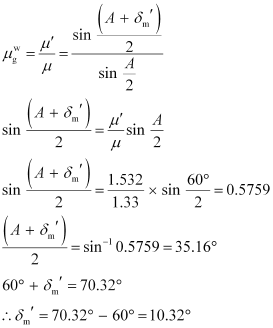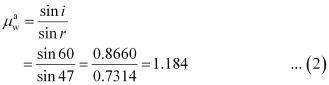 Using (1) and (2), the relative refractive index of glass with respect to water can be obtained as: