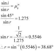 Hence, the angle of refraction at the water - glass interface is 38.68°.