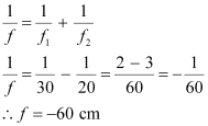 Hence, the focal length of the combination of lenses is 60 cm. The negative sign indicates that the system of lenses acts as a diverging lens.