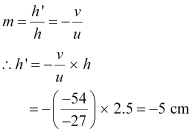 The height of the image is 2.5 cm. The positive sign indicates that the image is erect, virtual, and diminished.