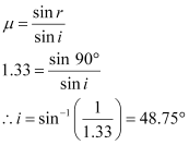 Using Snell’ law, we can write the relation for the refractive index of water as: