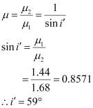 Thus, all the rays incident at angles lying in the range 0 < i < 60° will suffer total internal reflection.