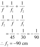 Ans : Focal length of the convex lens, f1 = 30 cm