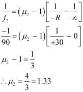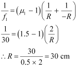 and the radius of curvature of one surface be R. Hence, the radius of curvature of the other surface is -R.