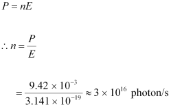Power emitted by the laser, P = 9.42 mW = 9.42 × 10-3 W