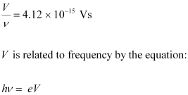 Ans : The slope of the cut-off voltage (V) versus frequency (ν) of an incident light is given as: