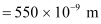 Average wavelength of photons present in sunlight,