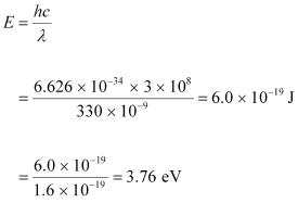 Wavelength of the incident radiation, λ = 330 nm = 330 × 10-9 m