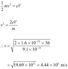 - #12-amomentum, andAns : At equilibrium, the kinetic energy of each electron is equal to the accelerating potential, i.e., we can write the relation for velocity (v) of each electron as: