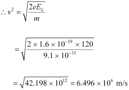 Ans : Kinetic energy of the electron, Ek = 120 eV
