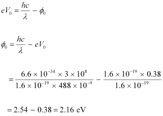 From Einstein’s photoelectric effect, we have the relation involving the work function Φ0 of the material of the emitter as: