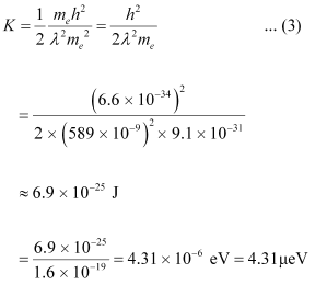 Hence, the kinetic energy of the electron is 6.9 × 10-25 J or 4.31 μeV.