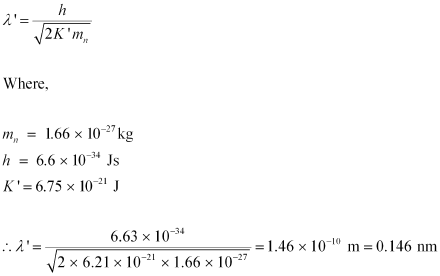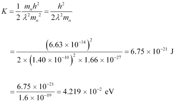 Hence, the kinetic energy of the neutron is 6.75 × 10-21 J or 4.219 × 10-2 eV.