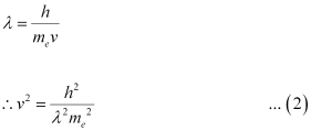 De Broglie wavelength (λ) and velocity (v) are related as: