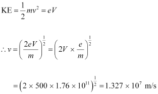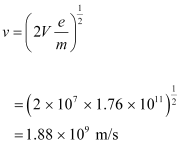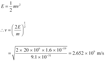 - #20-bUse the same formula you employ in (a) to obtain electron speed for an collector potential of 10 MV. Do you see what is wrong? In what way is the formula to be modified?Ans : Potential of the anode, V = 10 MV = 10 × 106 V