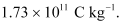 Specific charge of an electron, e/m = 1.76 × 1011 C kg-1