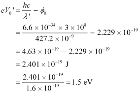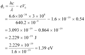 - #27Monochromatic radiation of wavelength 640.2 nm (1nm = 10-9 m) from a neon lamp irradiates photosensitive material made of caesium on tungsten. The stopping voltage is measured to be 0.54 V. The source is replaced by an iron source and its 427.2 nm line irradiates the same photo-cell. Predict the new stopping voltage.
