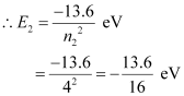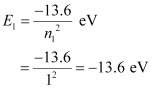 Ans : Ground state energy of hydrogen atom, E = - 13.6 eV