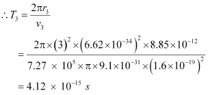 Hence, the orbital period in each of these levels is 1.52 × 10-16 s, 1.22 × 10-15 s, and 4.12 × 10-15 s respectively.