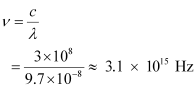 Hence, the wavelength of the photon is 97 nm while the frequency is 3.1 × 1015 Hz.