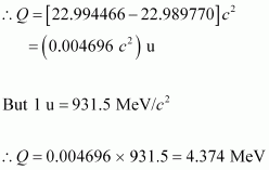∴ΔQ = [11.011434 - 11.009305 - 2 × 0.000548] c2