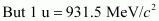 1 u = 931.5 MeV/c2