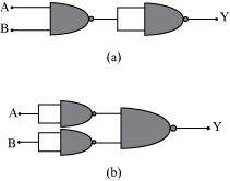 - Qstn #17You are given two circuits as shown in Fig. 14.46, which consist of NAND gates. Identify the logic operation carried out by the two circuits.