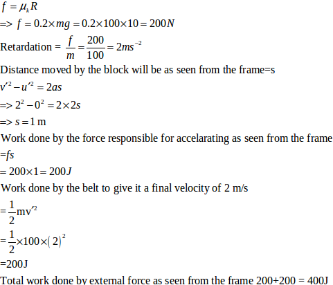 - Qstn #3A 100 kg lock is started with a speed of 2.0 m s-1 on a long, rough belt kept fixed in a horizontal position. The coefficient of kinetic friction between the block and the belt is 0.20.Ans : Here,
