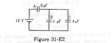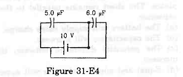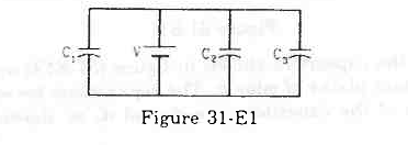 - Qstn #6Find the charges on the three capacitors connected to a battery as shown in figure (31-E1) Take