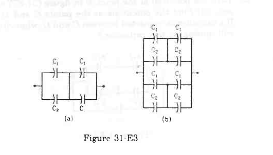 C1=4·0 μF and C2=6·0 μFin figure (31-E3). Calculate the equivalent capacitance of the combination between the points indicated.