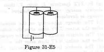 - Qstn #11The outer cylinders of two cylindrical capacitors of capacitance 2⋅2 µF each, are kept in contact and the inner cylinders are connected through a wire. A battery of emf 10 V is connected as shown in figure (31-E5). Find the total charge supplied by the battery to the inner cylinders.