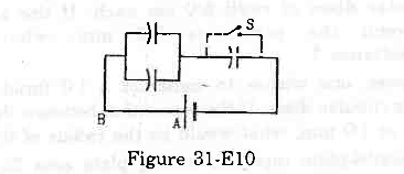 Ans : Initially, when the switch S is open, the equivalent capacitance is given by