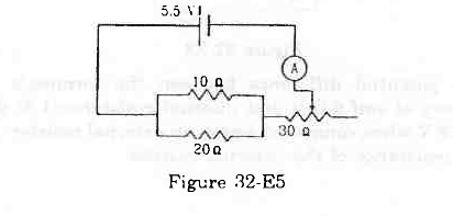 - Qstn #24The resistance of the rheostat shown in the figure (32-E5) is 30 Ω. Neglecting the meter resistance, find the