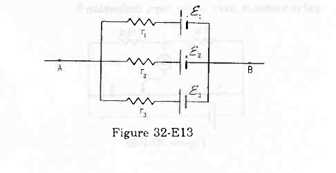 - #37In the circuit shown in the figure (32-E13), ε1 = 3 V, ε2 = 2 V, εa = 1 V and r1 = r2 = r3 = 1Ω. Find the potential difference between the points A and B and the current through each branch.