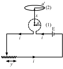 - Qstn #20Figure shows a circular coil of N turns and radius a, connected to a battery of emf ε through a rheostat. The rheostat has a total length L and resistance R. the resistance of the coil is r. A small circular loop of radius a‘ and resistance r‘ is placed coaxially with the coil. The centre of the loop is at a distance x from the centre of the coil. In the beginning, the sliding contact of the rheostat is at the left end and then onwards it is moved towards right at a constant speed v. Find the emf induced in the small circular loop at the instantAns :