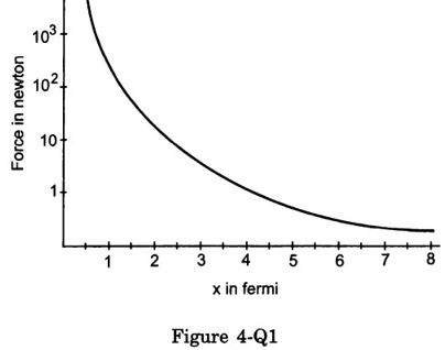 - Qstn #6Suppose the magnitude of Nuclear force between two protons varies with the distance between them as shown in figure. Estimate the ratio “Nuclear force/Coulomb force” for (a) x = 8 fm (b) x = 4 fm (c) x = 2 fm (d) x = 1 fm (1 fm = 10 -15m).